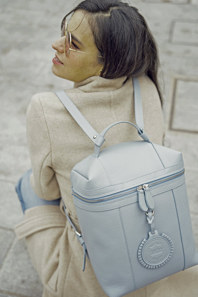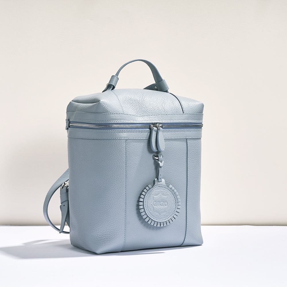 Lo zaino Berto, disponibile intermanete in pelle dollaro, oppure in morbido camoscio e pelle, è strutturato per garantirne l'elegante forma sia pieno o vuoto, sia indossato o appoggiato da qualche parte.