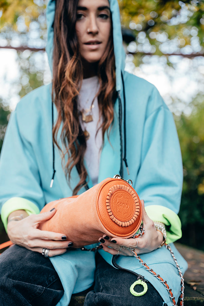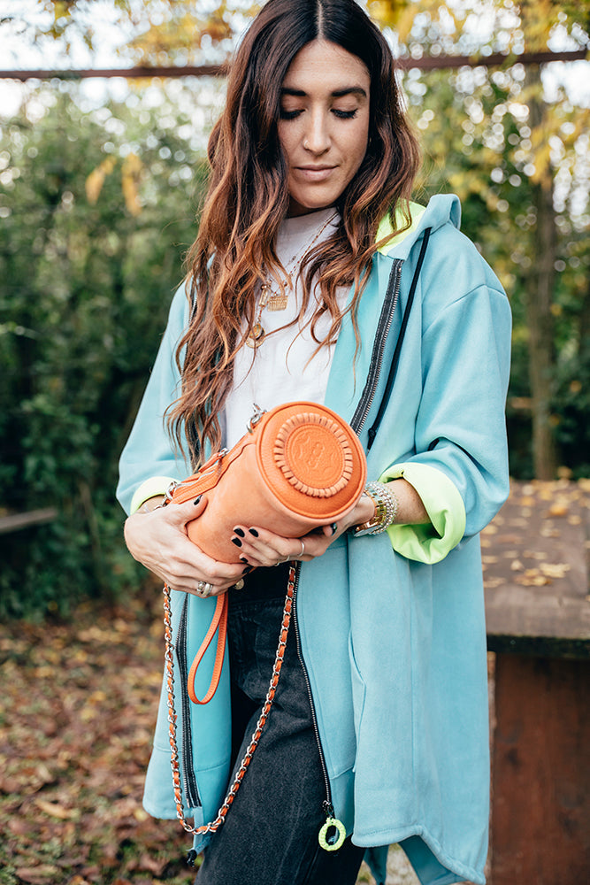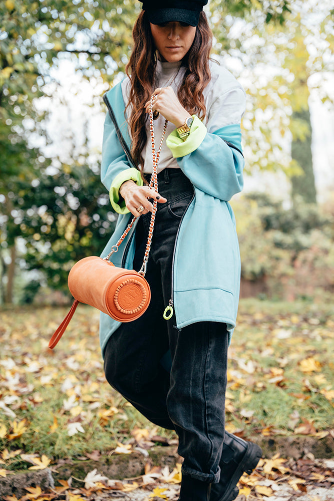 Si accosta ai dettagli in pelle dollaro in stile gagio, laminata e non a seconda del gusto e dell'occasione in cui la si indossa.
