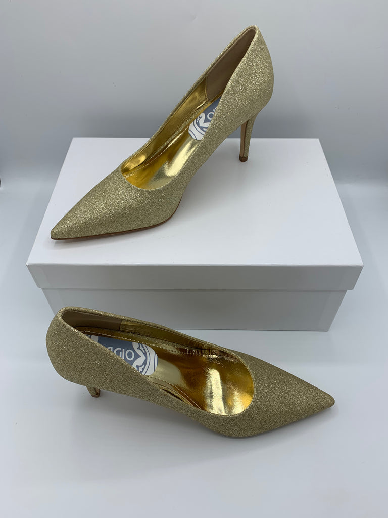 La nostra decolleté Mima ci fa pensare alla serate in discoteca a Milano Marittima, la sua particolarità sono i glitter oro di cui è tempestata che non vi faranno passare inosservate.
