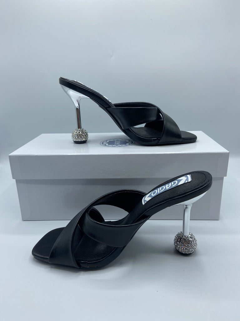 Il nostro Riccone è un sandalo nero in ecopelle, vi farà subito sentire come Cenerentola grazie al suo tacco cromato argento con sfera gioiello.